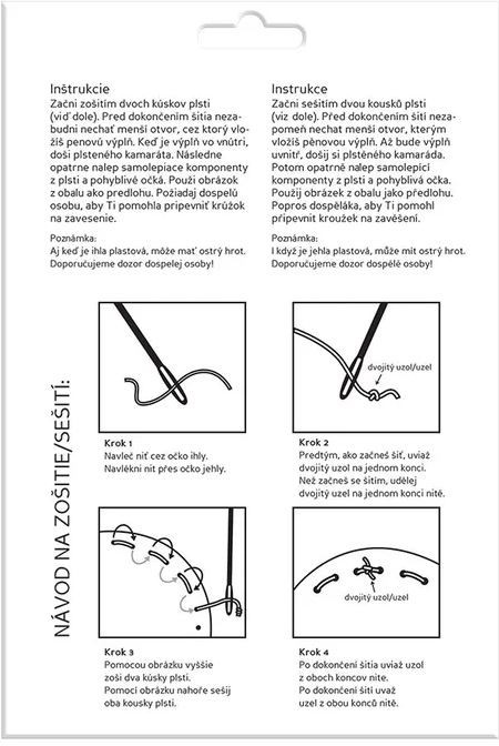 Kreativní sada obsahuje jednotlivé části zvířátka s velikou plastovou jehlou s tupým hrotem.