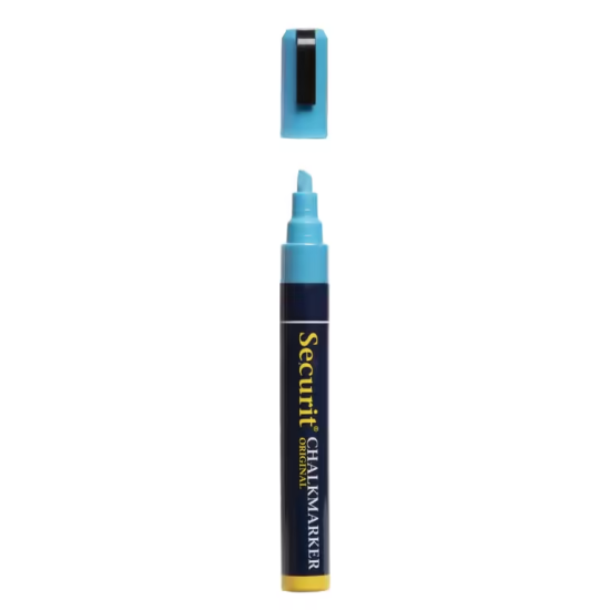 Tekutý křídový popisovač střední stopy s hrotem 2 - 6 mm v modré barvě píše na jakýkoliv neporézní materiál. Ideální pomocník pro vytváření nápisů a kreseb na světlé i tmavé tabule a produkty značky Securit. Na rozdíl od klasických kříd, je práce s křídovým fixem rychlá a čistá. S popisovačem nehrozí, že byste měli prsty celé barevné a pod tabulí se vám nebude kupit křídový prach.