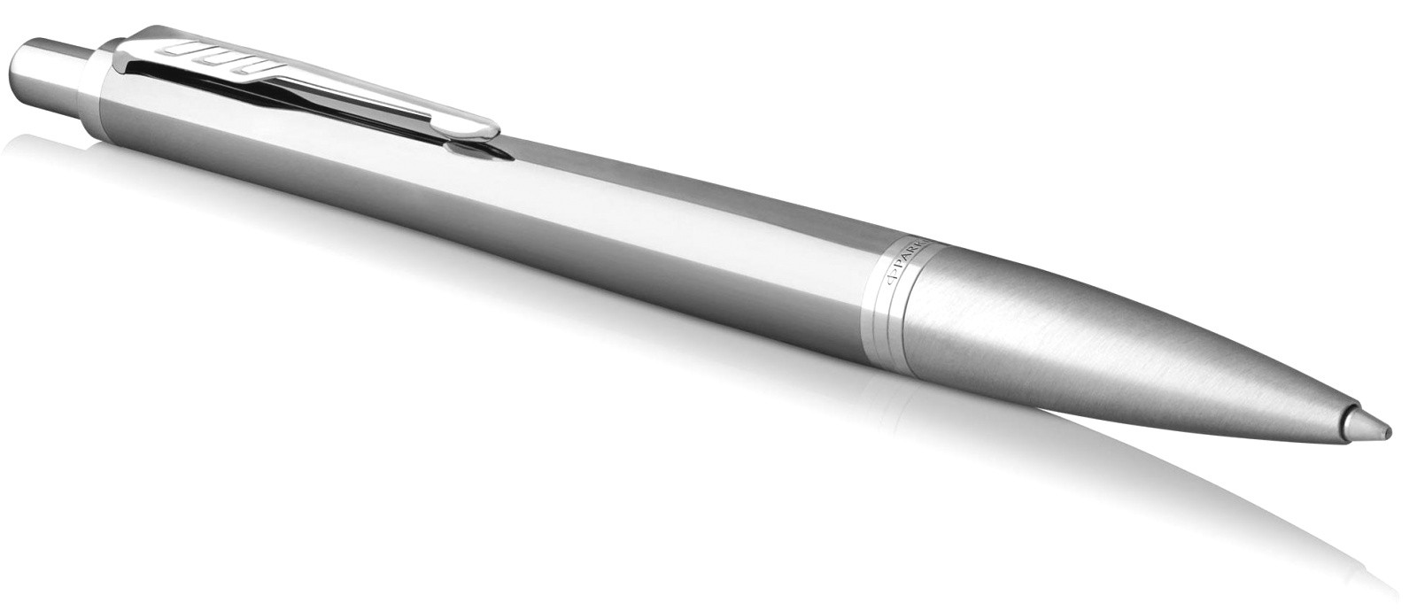 Kuličková tužka Parker Urban Premium Silver Powder CT. Mosazné tělo s odolnou šedou povrchovou vrstvou nanesenou pomocí techniky PVD, leštěnou. V kombinaci s doplňky pokovenými chromem.