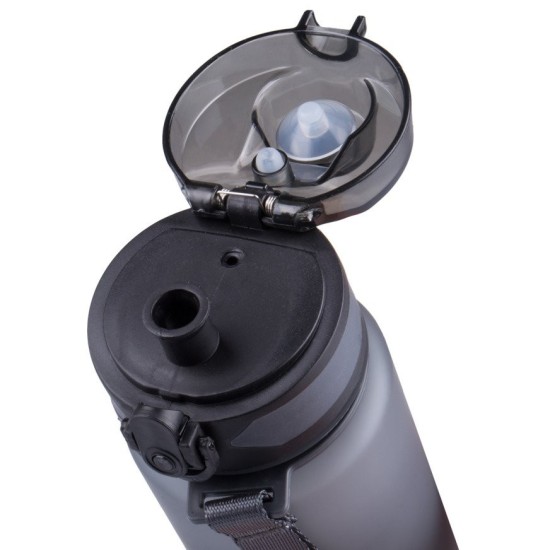 Gumička navíc usnadňuje držení láhve v ruce a pásek umožňuje její připevnění kamkoli.