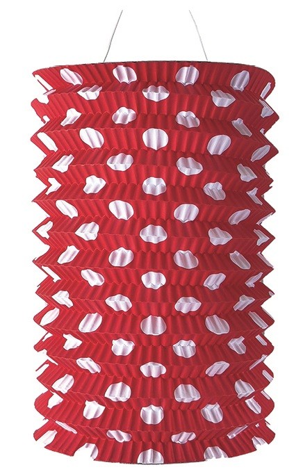 Lampion válec - červený s puntíky - 15 x 22 x 15 cm - 9262