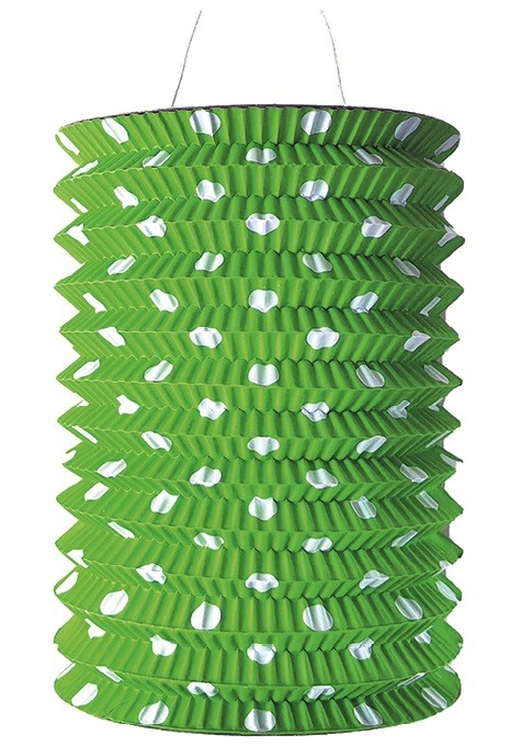 Lampion válec - zelený s puntíky - 15 x 22 x 15 cm - 9261