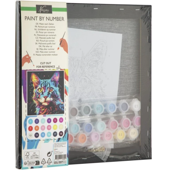 Sada obsahuje vše potřebné – 1 plátno, 18 akrylových barev, 3 štětce, předlohu a háčky na zavěšení. Akrylové barvy mají syté odstíny, snadno se nanášejí a po zaschnutí vytvářejí jemný lesk.