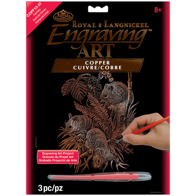 Měděný vyškrabávací obrázek - Polní myši - 20 x 25 cm - COPF13
