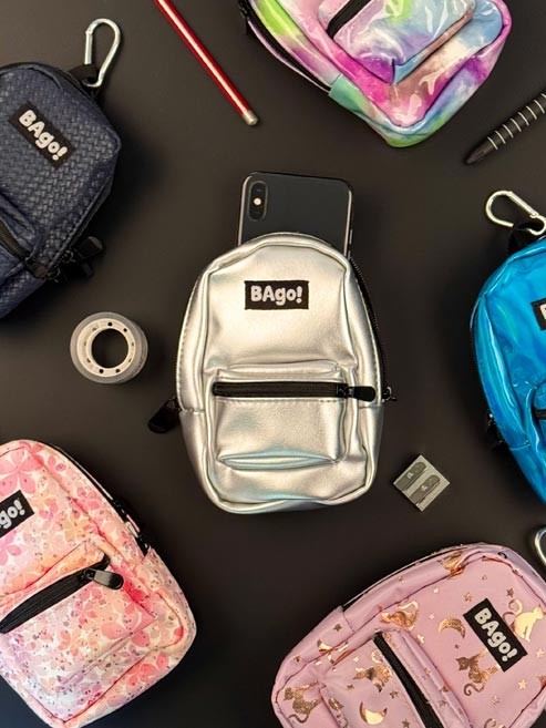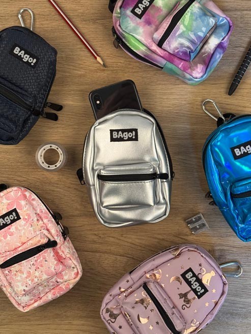 Batůžek disponuje prostornou hlavní kapsou s dvoucestným zipem, která je ideální pro uložení drobných nezbytností. Přední kapsička se zipem nabízí další úložný prostor na malé předměty, jako jsou peníze nebo klíče. Na zadní straně mají dvě černé gumičky, které imitují ramenní popruhy a umožňují tak snadné upevnění na řidítka kola či koloběžky, nebo jednoduše na zápěstí. Batůžky jsou vybaveny stříbrnou karabinou, díky které je připevníte ke kalhotám, batohu nebo tašce, a může posloužit také k zavěšení klíčů či přívěsku. Tyto stylové batůžky zaujmou nejen svým vzhledem, ale i praktičností.
