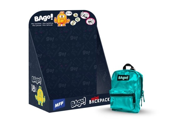 Minibatůžek BAgo v lesklé mintové barvě, v originálním designu. Stylový doplněk pro každého teenagera. Je možné ho nosit na zápěstí, připnutý ke kalhotám nebo na řidítkách koloběžky či kola. Batůžek disponuje jednou větší kapsou s dvoucestným zipem a jednou menší, vhodnou třeba na drobné. Součástí batůžku je karabina na klíče, popřípadě přívěsek.