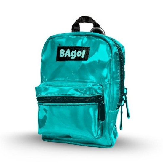 Minibatůžek BAgo v lesklé mintové barvě, v originálním designu. Stylový doplněk pro každého teenagera. Je možné ho nosit na zápěstí, připnutý ke kalhotám nebo na řidítkách koloběžky či kola. Batůžek disponuje jednou větší kapsou s dvoucestným zipem a jednou menší, vhodnou třeba na drobné. Součástí batůžku je karabina na klíče, popřípadě přívěsek.