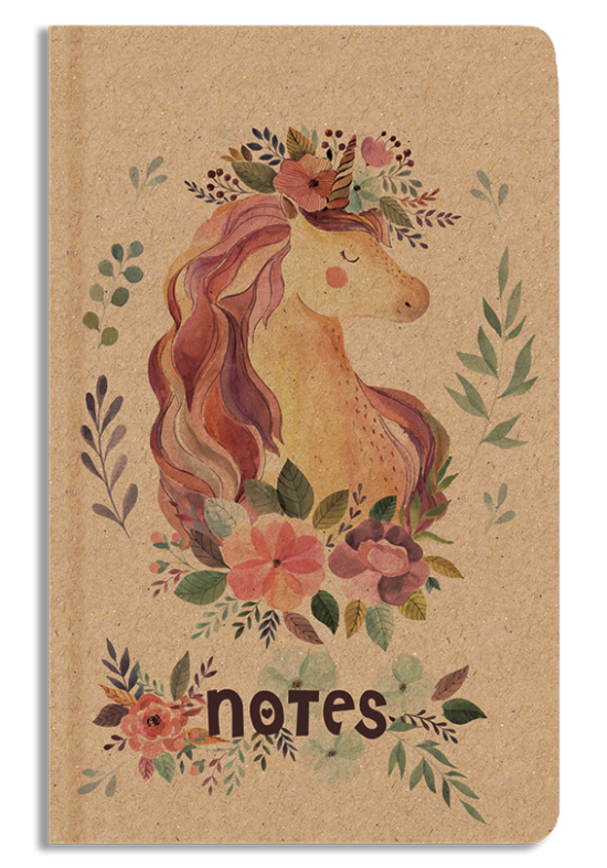 Notes A5 s krásnou grafikou Jednorožce na kraftové obálce.