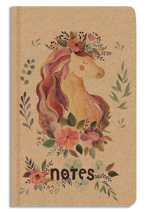 Notes A5 s krásnou grafikou Jednorožce na kraftové obálce.