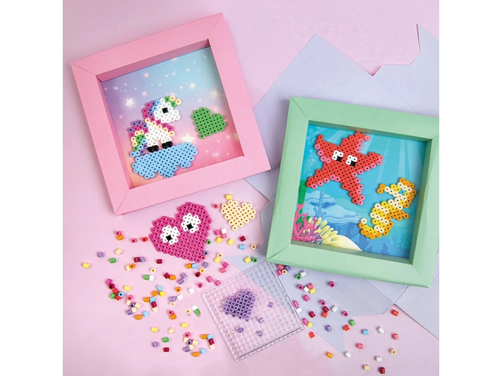 Proměňte barevné korálky v úžasné dekorace! Tato sada vám umožní vytvořit si vlastní jedinečné obrázky, které pak můžete umístit do přiložených papírových rámečků. Je to zábavný a jednoduchý způsob, jak si vytvořit umění, které můžete h