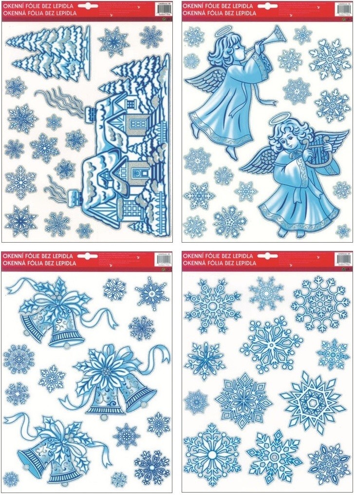 Vánoční dekorace bez lepidla. Adhezní materiál se přichytí na sklo.