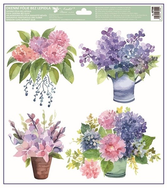 Motiv květin v jemných pastelových tónech krásně vynikne na oknech, vitrínách i zrcadlech a vytvoří klidnou, harmonickou atmosféru. Ideální dekorace pro domácnosti i komerční prostory po celý rok.