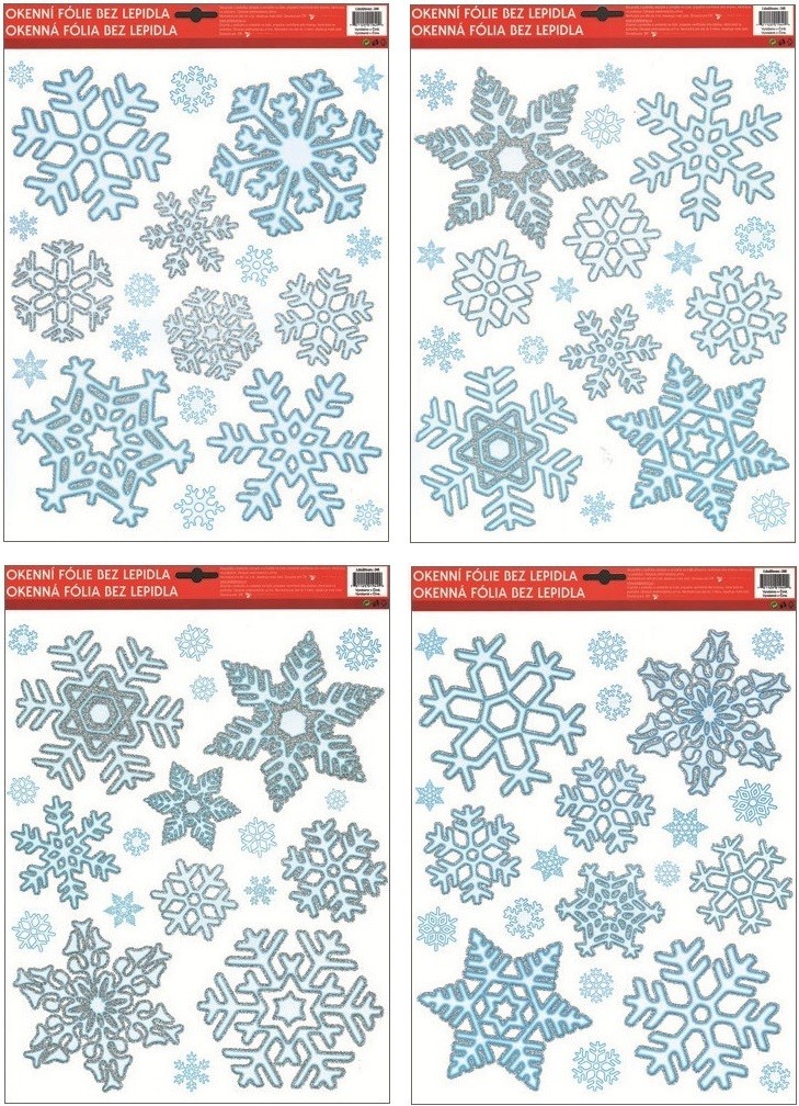 Okenní fólie - ledové vločky s glitry - 30 x 20 cm - 348