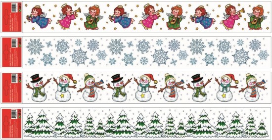 Okenní fólie - pruh - andílci, lesík, vločky a sněhuláčci - 55 x 7 cm - 351.