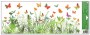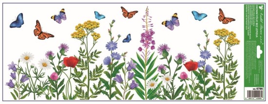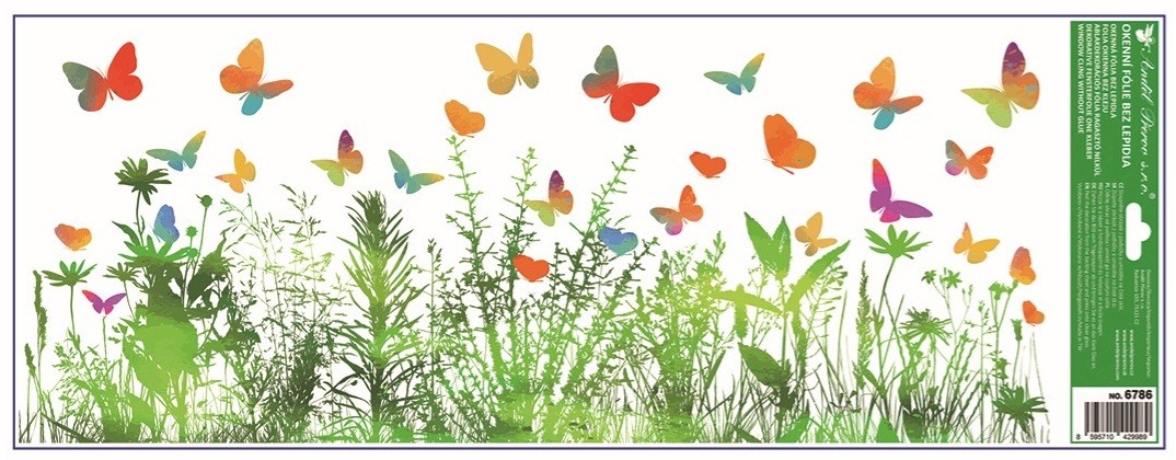 Dekorační okenní fólie ve formě pruhu s motivem květin a motýlů o rozměru 22,5 × 60 cm je ideální pro ozdobení spodní nebo horní části okna. Přilne elektrostaticky – bez lepidla, nezanechává žádné stopy, snadno se aplikuje a lze ji opakovan