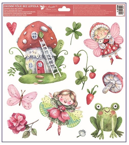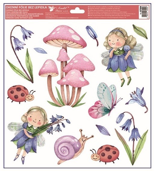 Pohádkový motiv víl doplněný houbami, květinami a drobnými detaily vytvoří hravou a kouzelnou atmosféru. Dekorace krásně vynikne na oknech, vitrínách i zrcadlech a rozzáří interiér jemným třpytem.