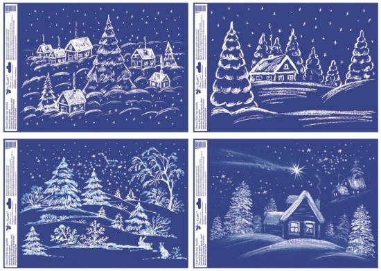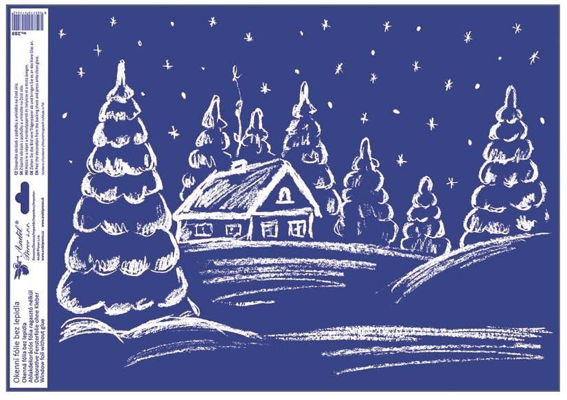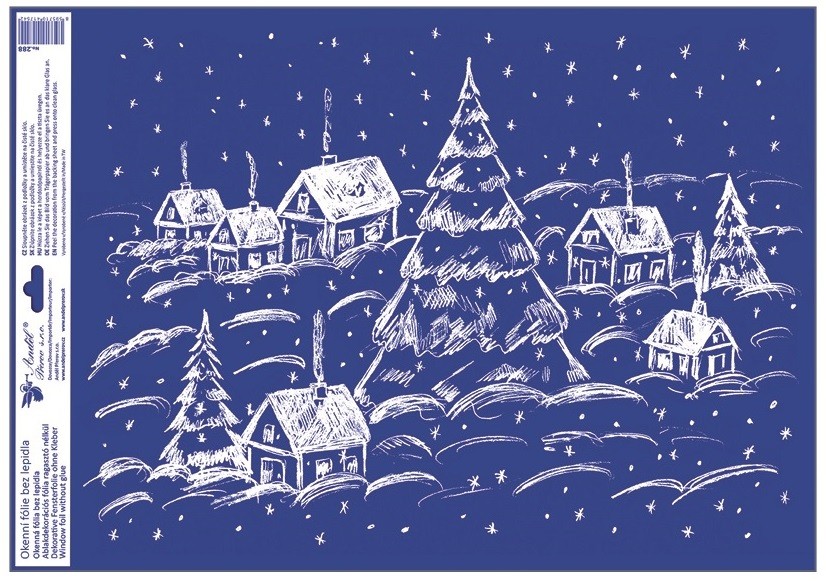 Dekorační okenní fólie se zimními motivy. Folie neobsahují lepidlo, na plochu přilnou elektrostaticky a nezanechávají po sobě žádnou stopu. Jsou opakovaně použitelné. Vhodné jsou na jakékoli hladké plochy, například sklo, výlohy, zrcadla nebo kachličky.