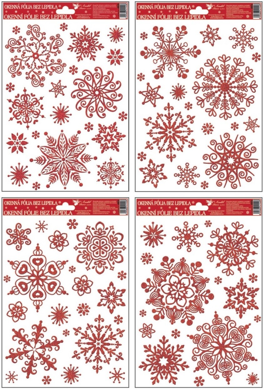 Okenní fólie - Vločky, sněhový efekt - červené 465
