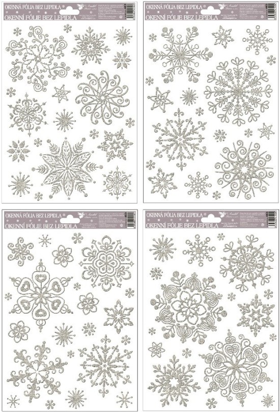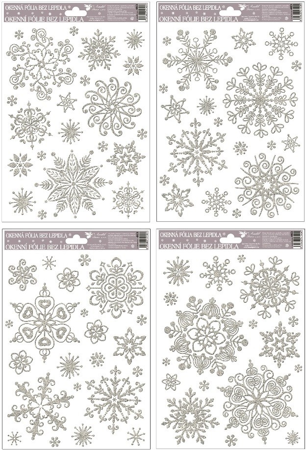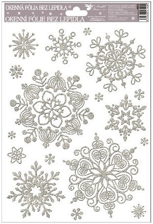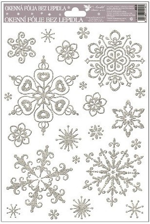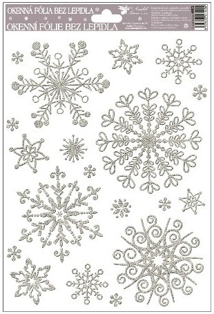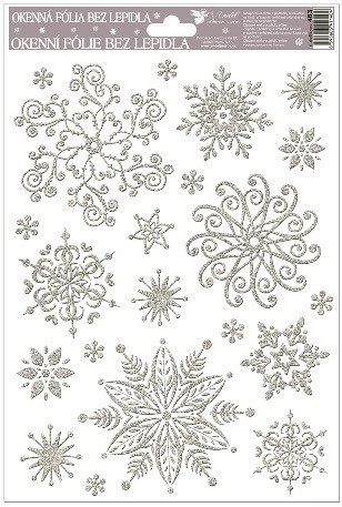Okenní fólie - stříbrné vločky se sněhovým efektem - 27 x 20 cm - 463