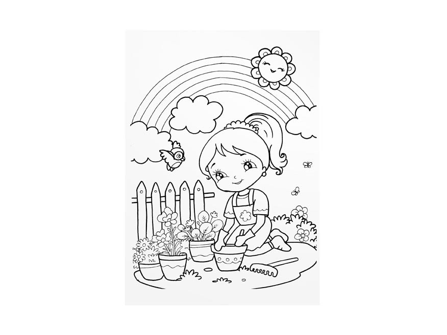 - 32 stran obrázků s květinami, zvířátky a zahradními motivy