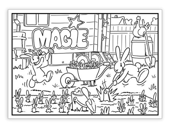 Omalovánky Bob a Bobek přinášejí dětem oblíbené králíky z kouzelníkova klobouku v novém příběhu plném napětí a fantazie. Každá stránka ukrývá scénky k vybarvení, které sledují jejich zábavné pátrání po tajemném Mrkvojedovi.