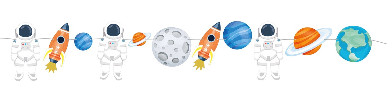 Délka girlandy je 250 cm a obsahuje 11 kusů obrázků s vesmírnou tématikou.