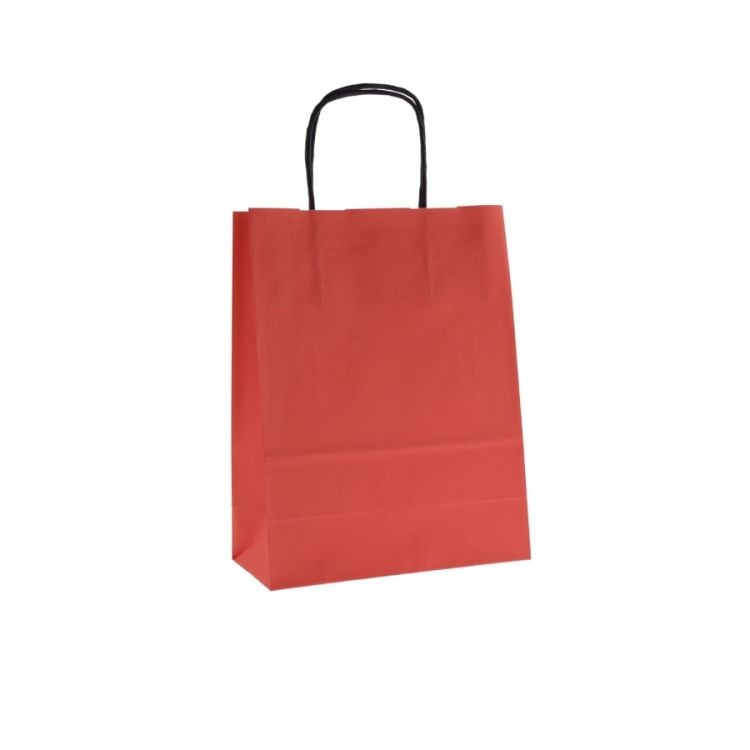Červená papírová taška je vyrobena z hladkého, bílého papíru 90g/m2.