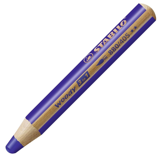 STABILO woody 3 v 1 je mimořádně všestranný produkt: je to pastelka, vodovka a voskovka v jednom. Díky své vysoké intenzitě barev je ideální i na tmavý a černý papír i pro vyškrábávací techniku. Dá se snadno rozmývat štětcem s vodou a umí vytvářet unikátní akvarelové efekty. Funguje také skvěle na h