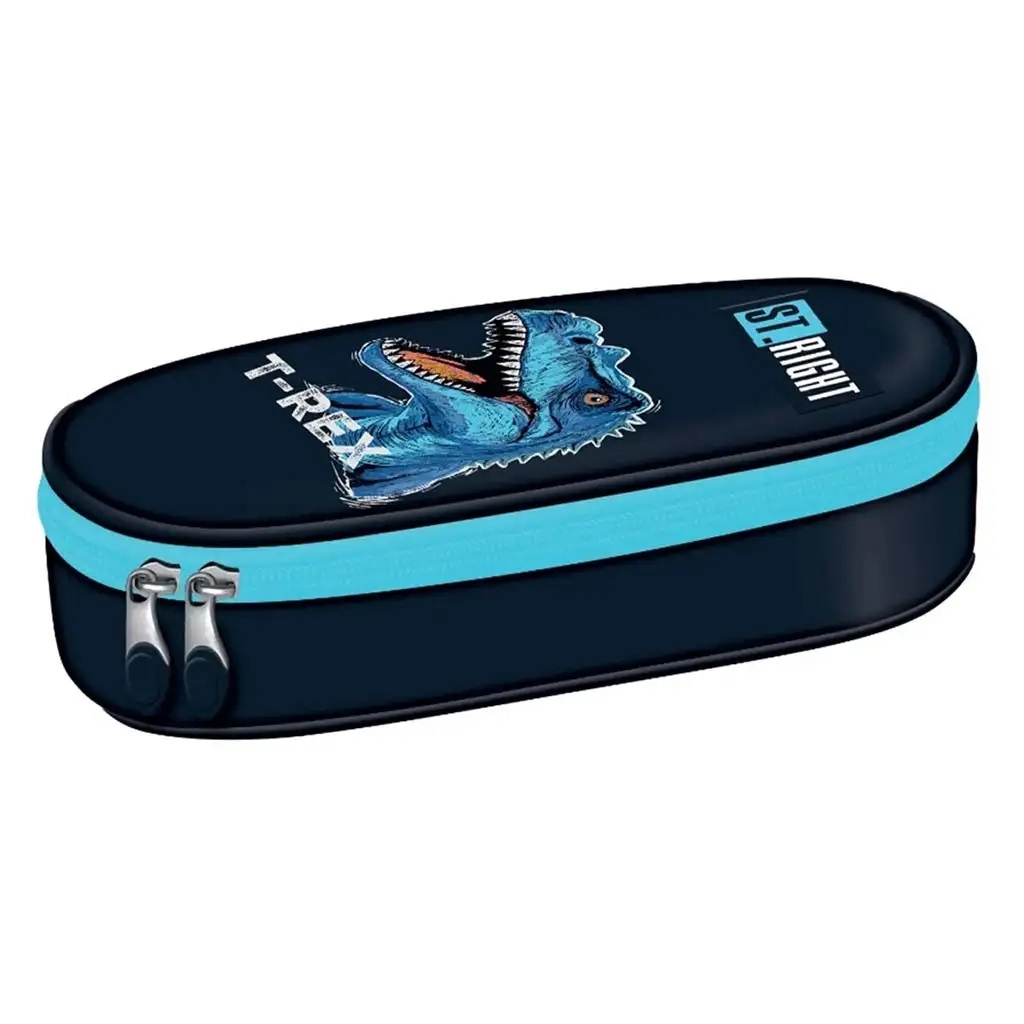 Hledáte pro svého školáka penál, který je „cool“ a zároveň udrží všechny psací potřeby v naprostém pořádku? Oválné pouzdro ST.RIGHT s motivem Blue T-Rex je ideální volbou pro každého fanouška pravěkých ještěrů. Díky vyztuženému těl