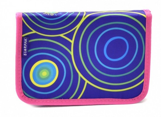 Školní jednopatrový penál s dvěma klopami.