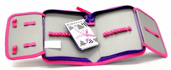 Má celkem 23 pružných gumových poutek pro uložení psacích potřeb.