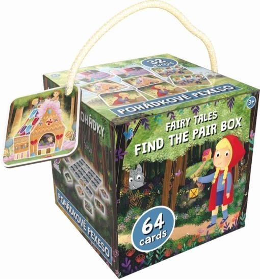 Pexeso v praktické, snadno uzavíratelné a díky provázku i přenositelné krabičce.