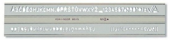 Písmenková šablona s výškou písma 5 mm.