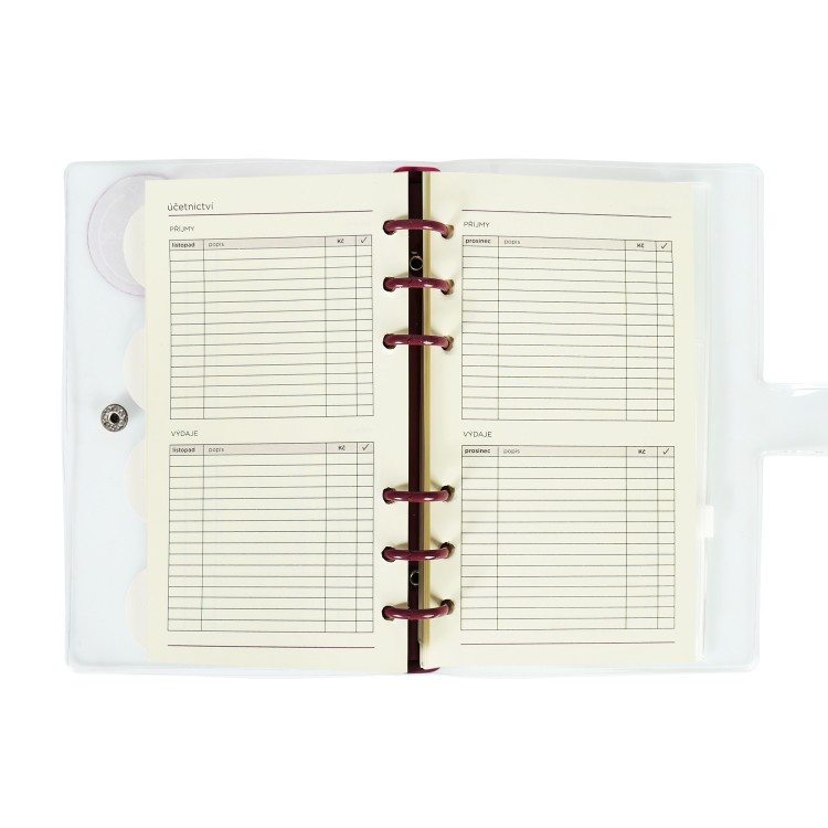 Diářům nechybí kapsičky na vizitky a uzavíratelná kapsa na drobné papírky. Kroužkové plánovací diáře obsahují samolepky a pravítko pro dokonalé a přehledné plánování.