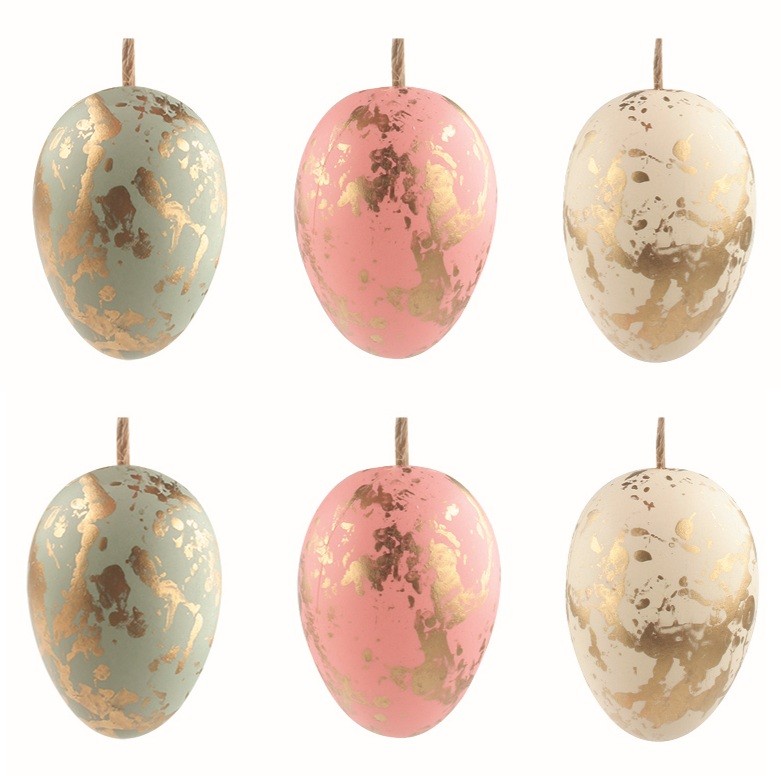 Plastová vajíčka na zavěšení se zlatým efektem - 4 cm - 6 ks