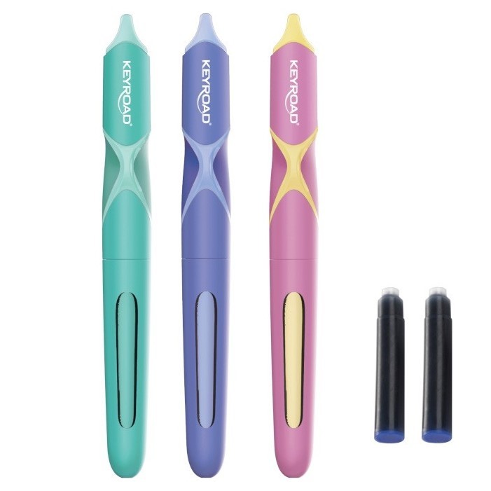 Plnicí pero v pastelových barvách s iridiovým hrotem ve tvaru M pro pohodlné psaní, ergonomickým měkčeným úchopem a průhledným tělem pro snadnou kontrolu stavu náplně.
