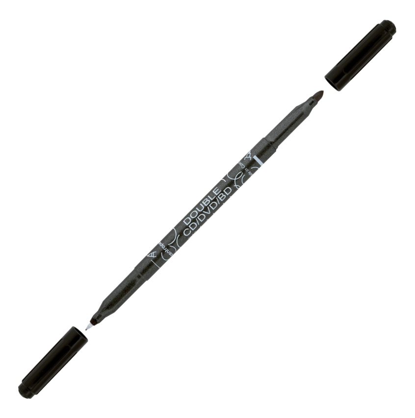 Marker se dvěma různými hroty na popisy CD, DVD, BD disků.