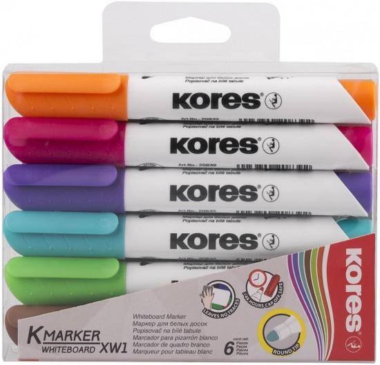 Značkovače Kores - na bílé tabule - kulatý hrot - 6 ks - 20802.
