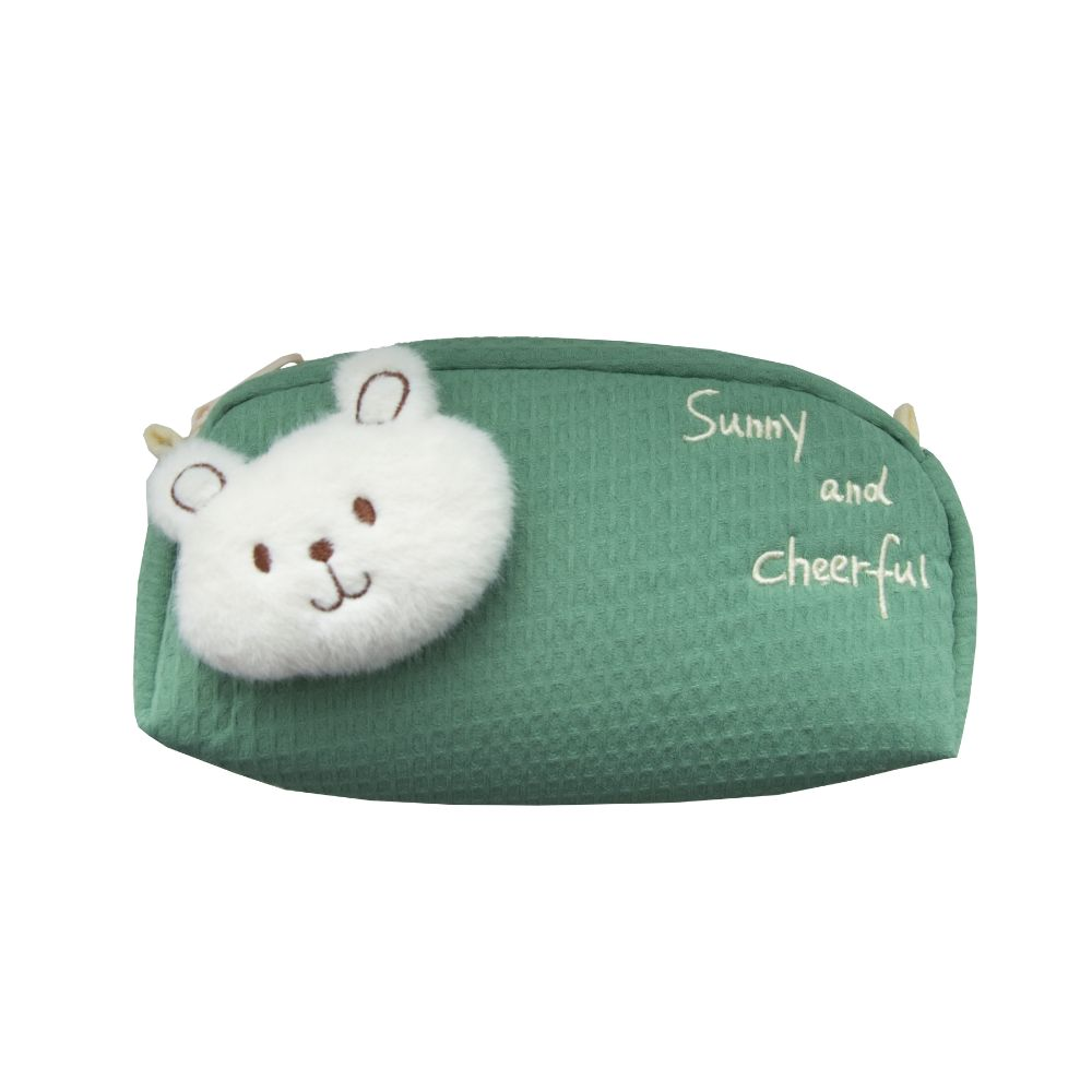 Roztomilé pouzdro na pastelky a tužky, které si děti okamžitě zamilují. Hlavní ozdobou je měkká plyšová hlavička medvídka, která působí jako malý mazlíček. Zbytek pouzdra je z příjemné textilní vafloviny a uvnitř je podšívka z odolného polyesteru, která chrání vše, co do něj děti uloží.