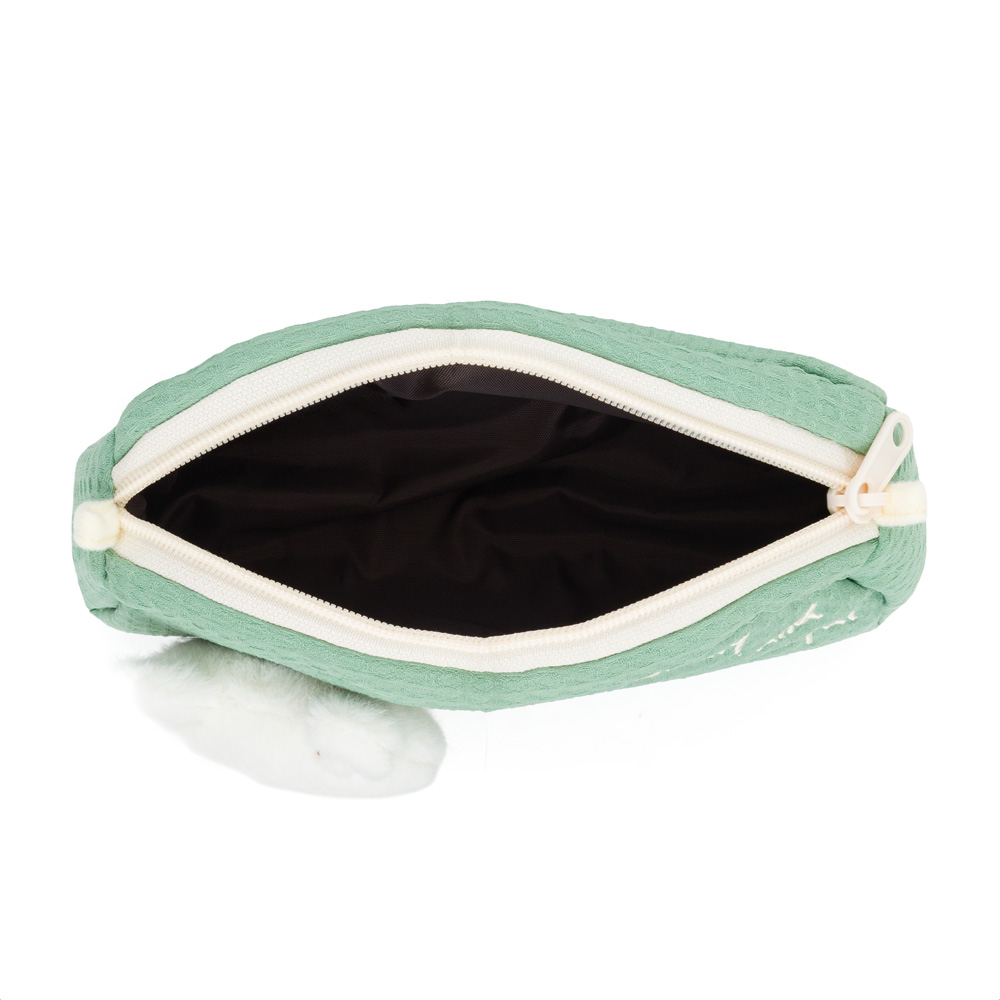 Hlavní ozdobou je měkká plyšová hlavička medvídka, která působí jako malý mazlíček. Zbytek pouzdra je z příjemné textilní vafloviny a uvnitř je podšívka z odolného polyesteru, která chrání vše, co do něj děti uloží.Etue má jednu prostornou kapsu na zip, kam se vejdou pastelky, tužky nebo malé poklady.