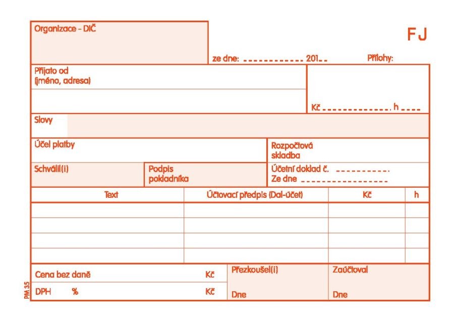 Přijmový pokladní doklad číslovaný propisovací - 35