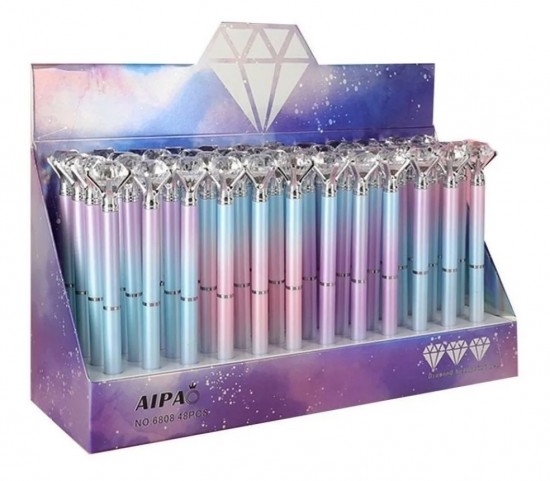 Plastová propiska ozdobená velkým diamantem. V balení 48 kusů, cena za ks.