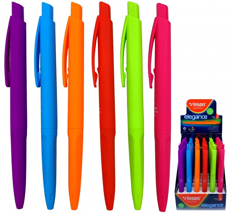 Kuličkové pero, stiskací mechanismus, plastové neprůhledné tělo.