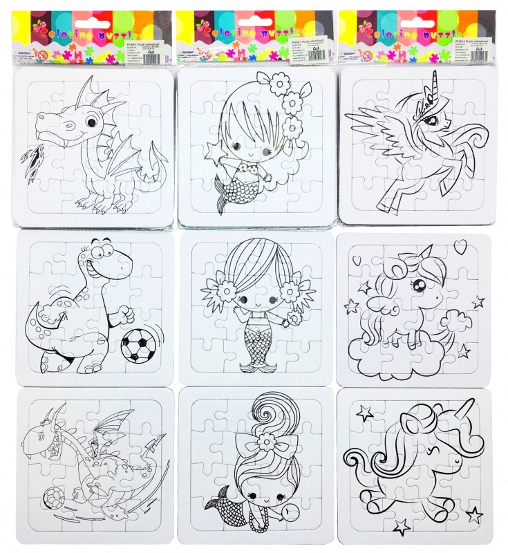 Sada 3 ks puzzle k vybarvení se shodně tématicky zaměřenými obrázky.