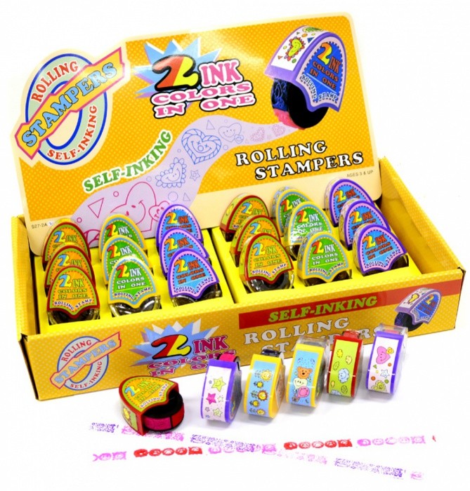 Razítko rolovací samobarvící – různé motivy - S27-2A2.Opravdu univerzální razítko.Rolovací váleček, který jednoduše tiskne vybraný motiv.Potiskne jakýkoliv materiál.Stačí jen položit a jemně táhnout.Barva tisku je: růžovo fialová, modro zelená, růžovo červená,Rozměr razítka :5,5 x 4,5 cm.Můžet