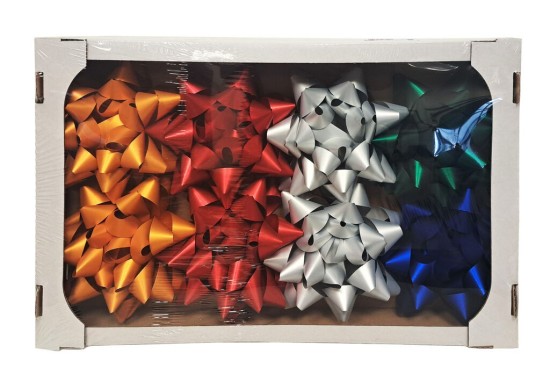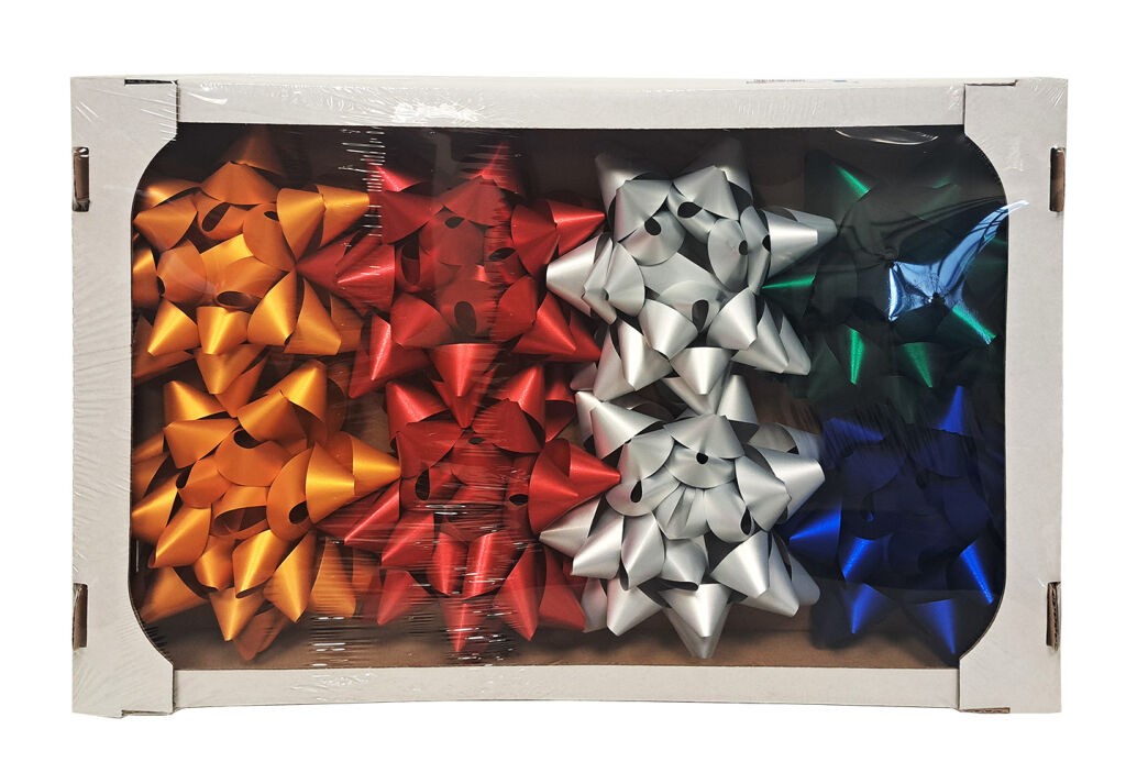 Dekorativní rozety. Hodí se na ozdobení dárků, balíčků nebo dárkových tašek.
