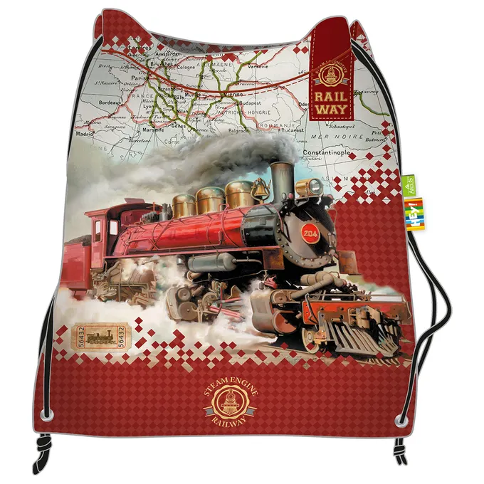 Po stranách jsou šňůrky na zatahování. Vak lze nosit přes rameno nebo připevnit k aktovce.