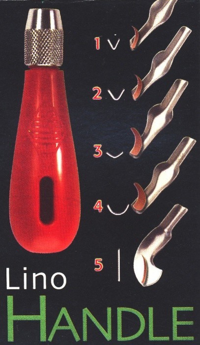 Sada obsahuje násadku a 5 různých "nožů" na tvorbu linorytu.