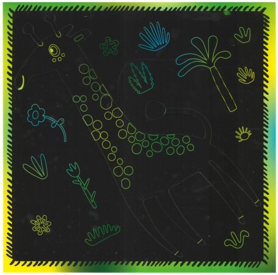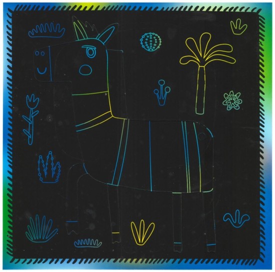- 3 x arch předtištěných škrabacích obrázků s motivy zvířat
