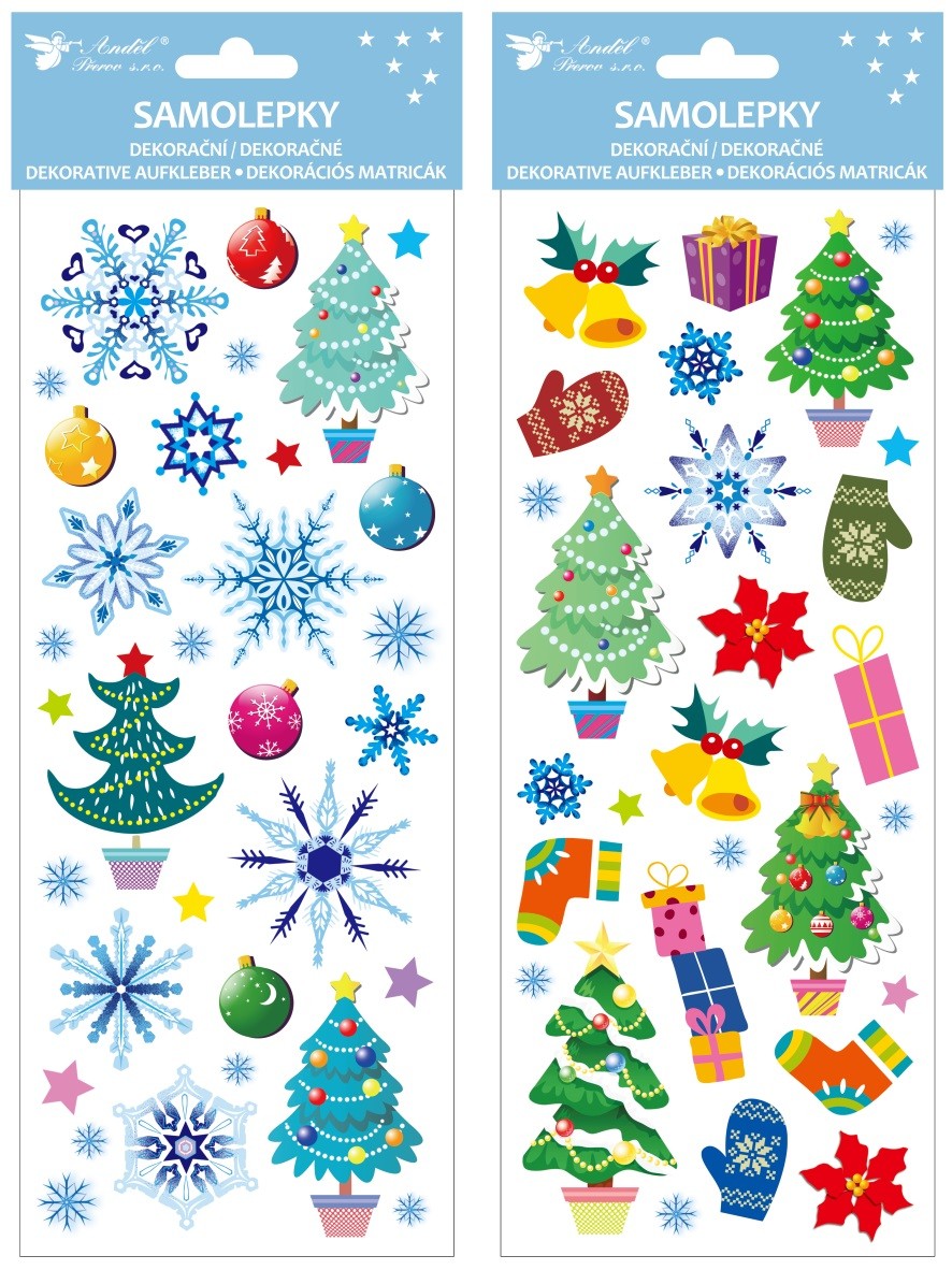Samolepky s glitrem - vánoční barevné - 13 x 34,5 cm - 10618